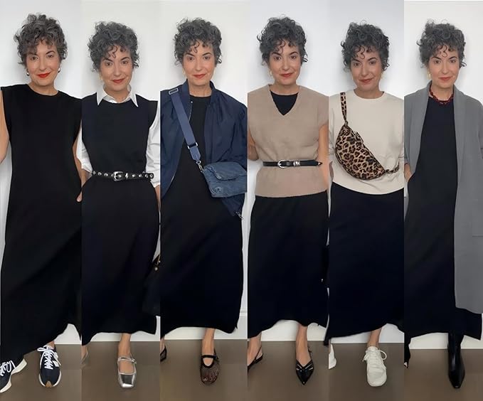 Women Year-Round Casual Round Neck Loose Split Wrinkle-Free Long Maxi Vacation Dress with Pockets